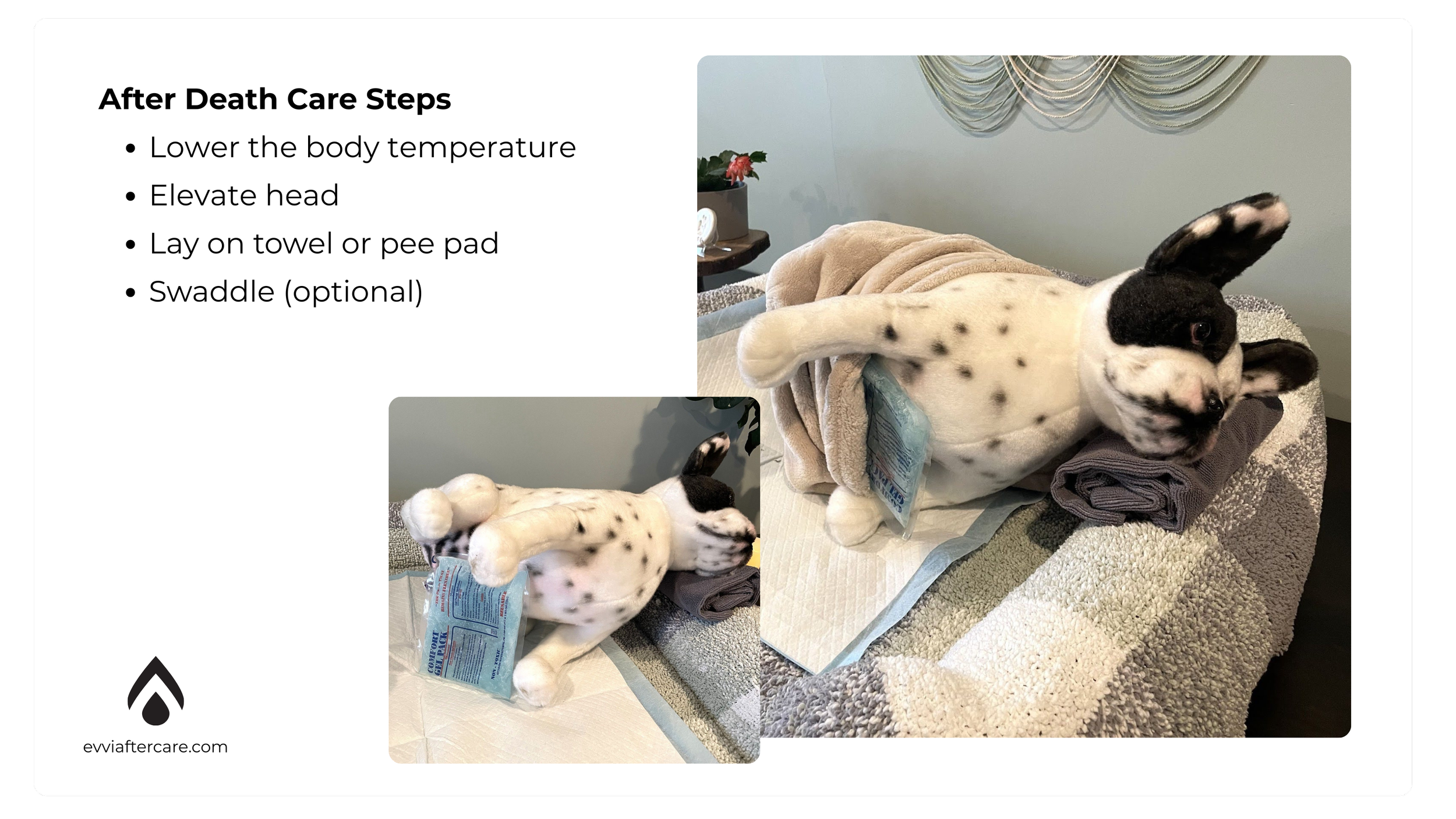 If your loved one had an infectious disease at the time of their death (such as parvovirus) it is important to wear gloves and thoroughly wash your hands after caring for them. While rare, there are some diseases that are still transmissible for hours or even days after the death has occurred.